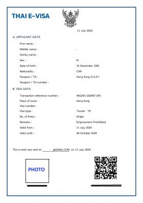 4)財務證明:金額不少於 20,000 泰銖(約港幣$5,000)